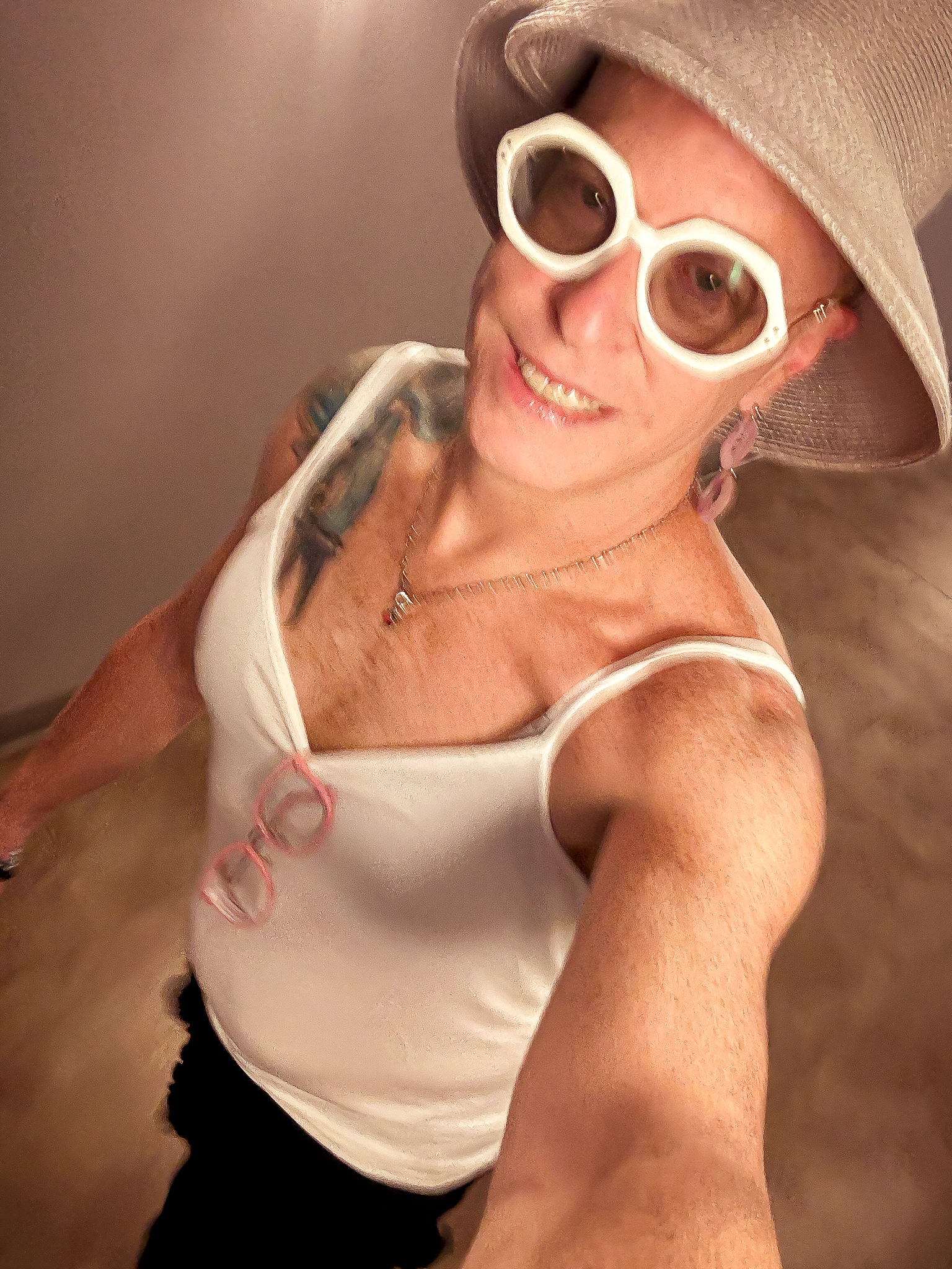 Hats, glasses, and a little sideboob….